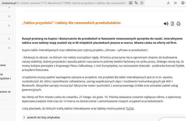 [14] https://erzeszow.pl/41-miasto-rzeszow/1713-aktualnosci/119082-tablice-przyszlosci-i-tablety-dla-rzeszowskich-przedszkolakow.html, wejście: 11.12.2025.