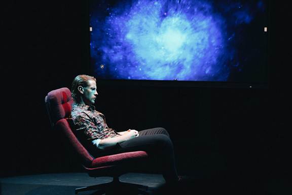 Na zdjęciu Sebastian Fabijański, materiał promocyjny spektaklu na podstawie tekstu Stanisława Ignacego Witkiewicza „Niemyte dusze/narkotyki”. Spektakl prezentowano w Instytucie Teologiczno – Pastoralnym w Rzeszowie.